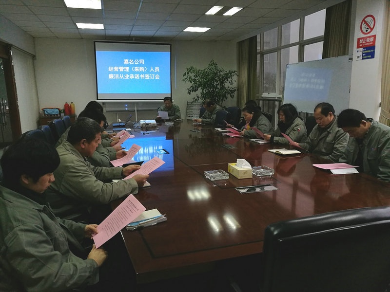 會議指出,對公司廉潔風險重點崗位的經營管理(采購)人員簽訂廉潔從業承諾書,是加強公司經營管理,推進依法治企的需要;是加強公司干部隊伍建設,從政治上關愛干部的需要;是加強企業黨建工作,實施從嚴治黨的需要。