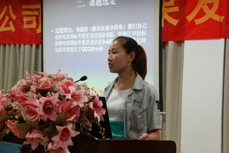 9月29日晚,公司召開了第十屆(2016年上半年)QCC成果發表會,染整事業部等6個部門的11項QCC成果在會上發表。經評委打分評選,染整事業部飛飛組的《去除絲光真絲布的擦白印》等3個成果獲一等獎,染整事業部優化漂白組的《優化漂白布染色工藝》等3個成果獲二等獎,品質管理部品管組的《降低客退貨率》等5個成果獲鼓勵獎。